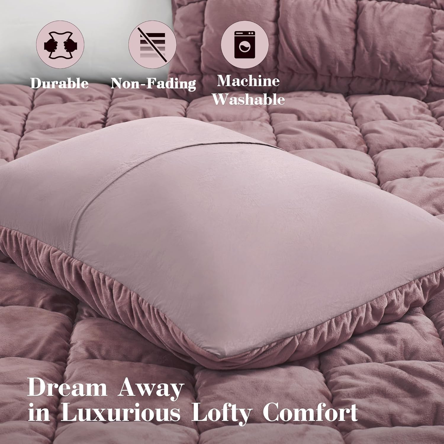 Hot selling factory Luxurious Pink 3D puff quilting 3 Pieces Queen Comforter Set (Matching Shams, Velvet Dream Puff ) for home